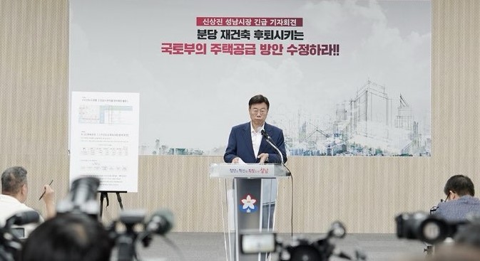 기자회견에서 신 시장은 “5개 1기 신도시 가운데 재건축 규모와 주민 수요가 가장 큰 분당만 추가 물량이 ‘제로’로 발표됐다”며 “이는 형평에 어긋날 뿐 아니라 분당 재건축을 사실상 후퇴시키는 조치”라고 비판했다. 또한 “올해 내 정비구역 지정이 안 된 선도지구 물량을 내년 물량에서 차감하겠다는 식의 압박은 시민을 우롱하는 갑질행정”이라고 지적했다.