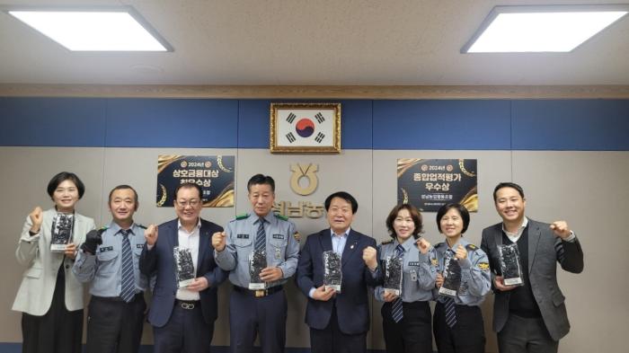 ▲성남농협 이형복조합장 ,김명섭 성남시 시민경찰연합회장,회원 기념모습