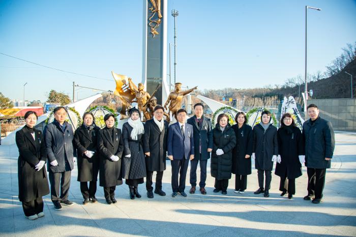 성남시의회(부의장 안광림을 비롯한 의원들)는 2일 성남시청 근린공원에 위치한 현충탑을 찾아 신년 현충탑 경배에 참석하며 새해 첫 공식 일정을 시작했다.